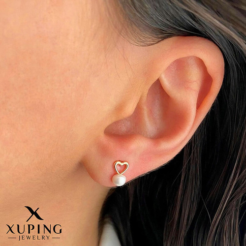 گوشواره سوزنی قلب و مروارید ژوپینگ