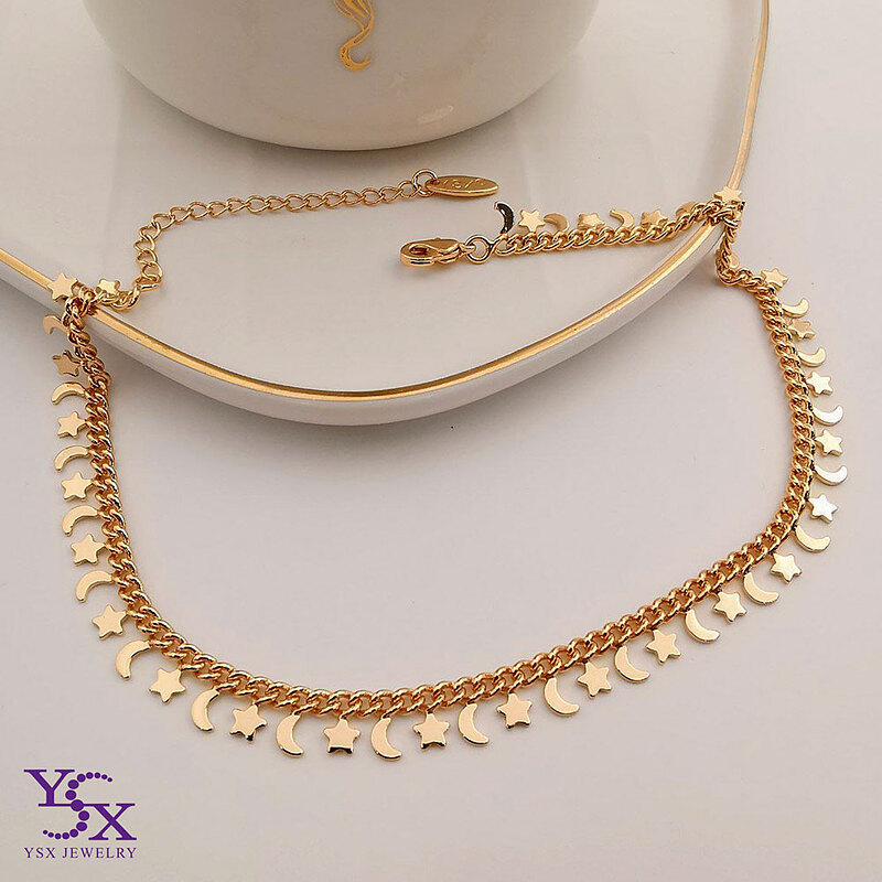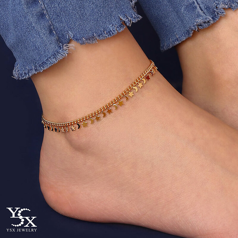💎 پابند پولک ماه و ستاره از برند YSX ⭕ دارای زنجیر اضافه جهت تنظیم طول پابند ❤️ کاملاً ضد حساسیت (تضمینی) 🥇 چندلایه آبکاری طلا (فوقالعاده براق) 👌🏻 کاملاً مشابه طلا (در طرح و ساخت) ⭕ رنگ کاملاً ثابت (دور از شوینده قوی)