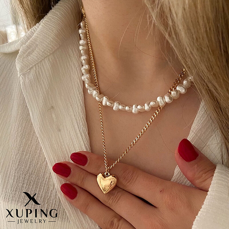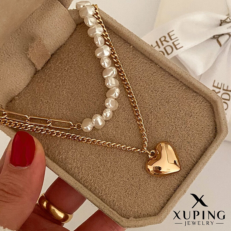 💎 گردنبند دولاین قلب و مروارید ژوپینگ
