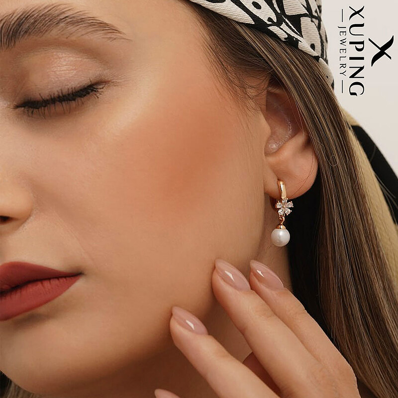 💎 گوشواره بابونه مرواریدآویز برند ژوپینگ